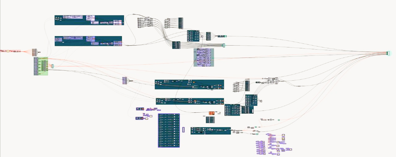 Пользователь вписывает данные в одну из схем раскладки ( такие как: максимальная длина профиля, вылет от проёмов окон, шаг доп. направляющих и т. д.) по расстановке профилей. Далее выделяет все АКП на фасаде в Revit проекте, и выбирает схему расстановки которую он заполнил. Скрипт расставляет профиля на всём фасаде с заданными пользователем правилами, если результат расстановки не корректный, пользователь может изменять параметры схемы и вся подсистема будет динамически обновляться в модели Revit.